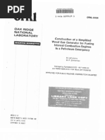 22. Meyer, W., The Supercharging of Internal Combustion Engine Plants Driven by Producer Wcod Gas with Special Reference to Motor Vehicles, Brown Boveri Review, v 28, n 8, 1941, pp 206-208. 23. Michalski, W. and J. Spiers, Conversion of Compression Ignition Engines to Producer Gas Operation, Gas and Oil Power, v 39, n 468, 1944, pp 244-249. 24. Middleton, F. A. and C. S. Bruce, Engine Tests with Producer Gas, Journal of Research of the National Bureau of Standards, v 36, February, 1946. 25. Negretti, W., The Adaption of Turbo-Charged Producer-Gas-Operated Engines to Vehicle Running Conditions, The Brown Poveri Review, v 30, n 7, 8, July/August 1943, pp 184-187. 26. Nrdstrom, Olle, Redogorelse for Riksnamndens for Ekonomisk For svarsberedskap F6rsknings- Och Fl7rsksverksamhet ph Gengasomr~det vid Statens Maslnprovningar 1957-1963, (from) Overstyrelsen for Ekonomisk forsvarsberedskap, Sweden, January, 1962. 27. Ogunlowo, A. S., Design Modification and Controls for the Operation of a Single-Cylinder Air-Cooled Naturally-Aspirated Diesel Engine on ProducerGas Using Pilot Injection of Diesel Fuel, M.S. Thesis, Department of Agricultural Engineering, University of California, Davis, 1979. 28. Porter, J. C. and R. Wiebe, Gasification of Agricultural Residues, U.S. Department of Agriculture, Northern Regional Research Laboratory, AIC 174, 1948. 29. Renton, C., Producer Gas Tests in the Queensland Railway Department, Institution of Engineers, Australia, October, 1949, pp 274-278.
