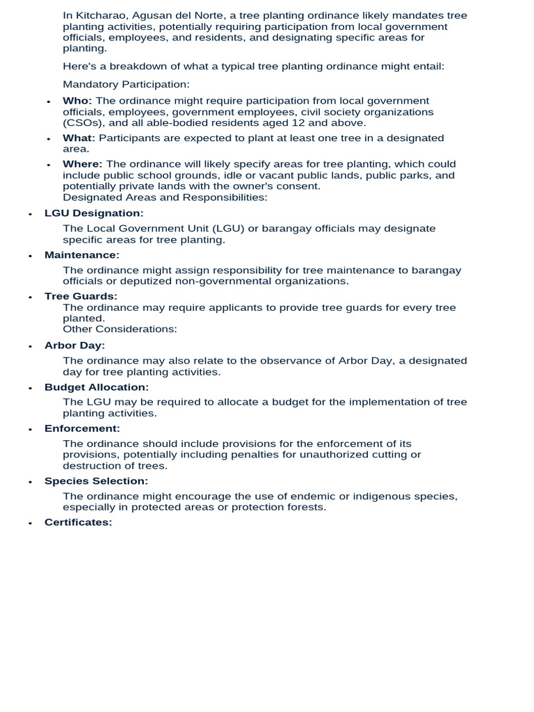 In Kitcharao, Agusan del Norte, a tree planting ordinance likely mandates tree