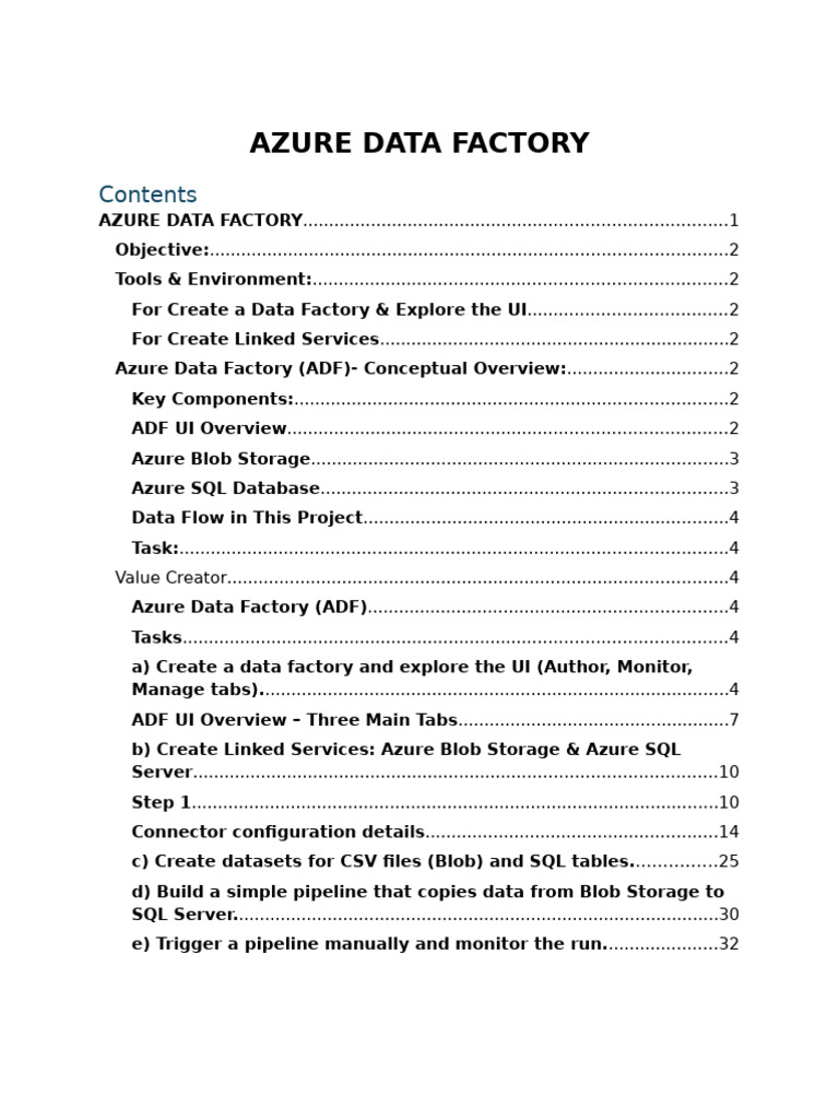 AZURE DATA FACTORY.................................................................................1