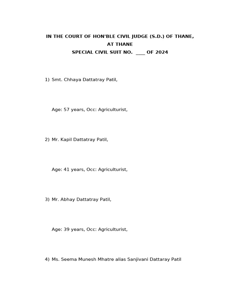7) After the demise of Mr. Dattatray Sukur Patil, the Plaintiffs are