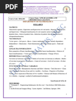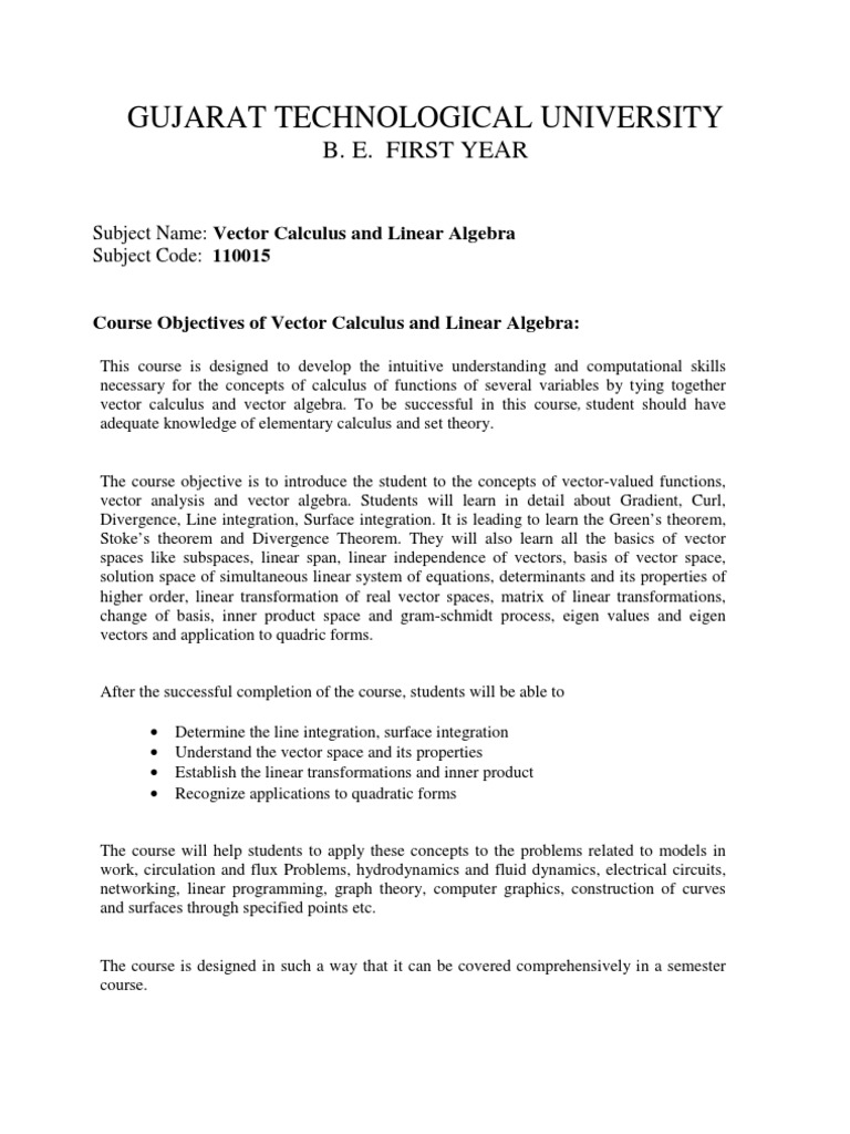 Subject Name: Vector Calculus and Linear Algebra Subject Code: 110015