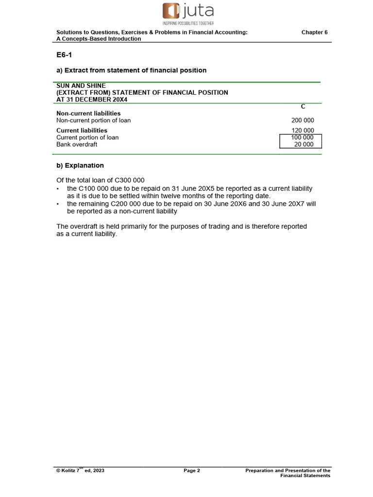 • the C100 000 due to be repaid on 31 June 20X5 be reported as a current liability