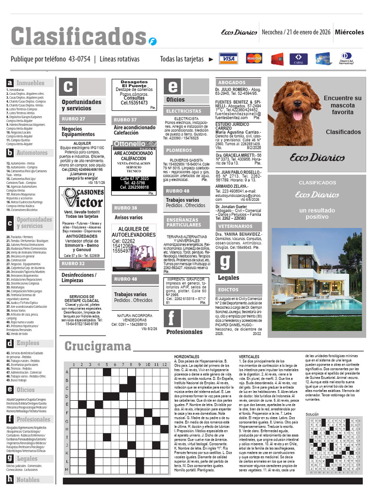 Clasificados Necochea / 21 de enero de 2026 Miércoles