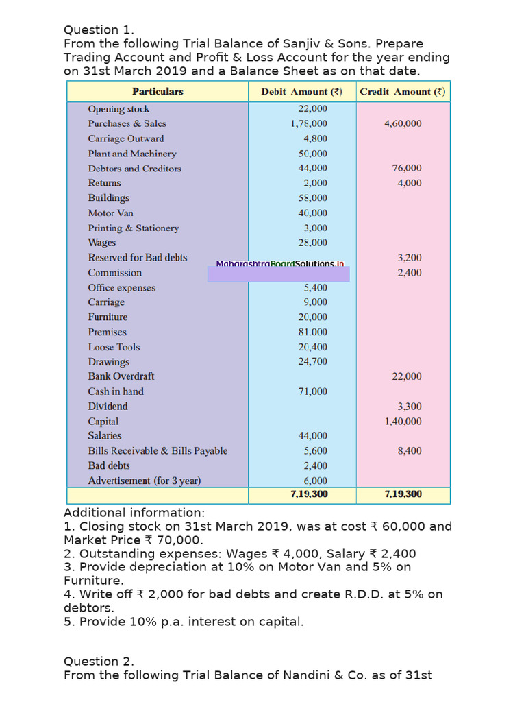 1. Closing stock of goods on 31st March 2019 valued at ₹ 7,100