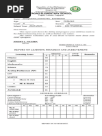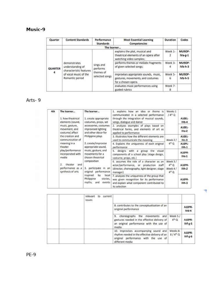 The document lists grades for various subjects, with all subjects receiving a score of 9. The subjects include Music, Arts, Physical Education (PE), and Health. This indicates a high level of performance in these areas.