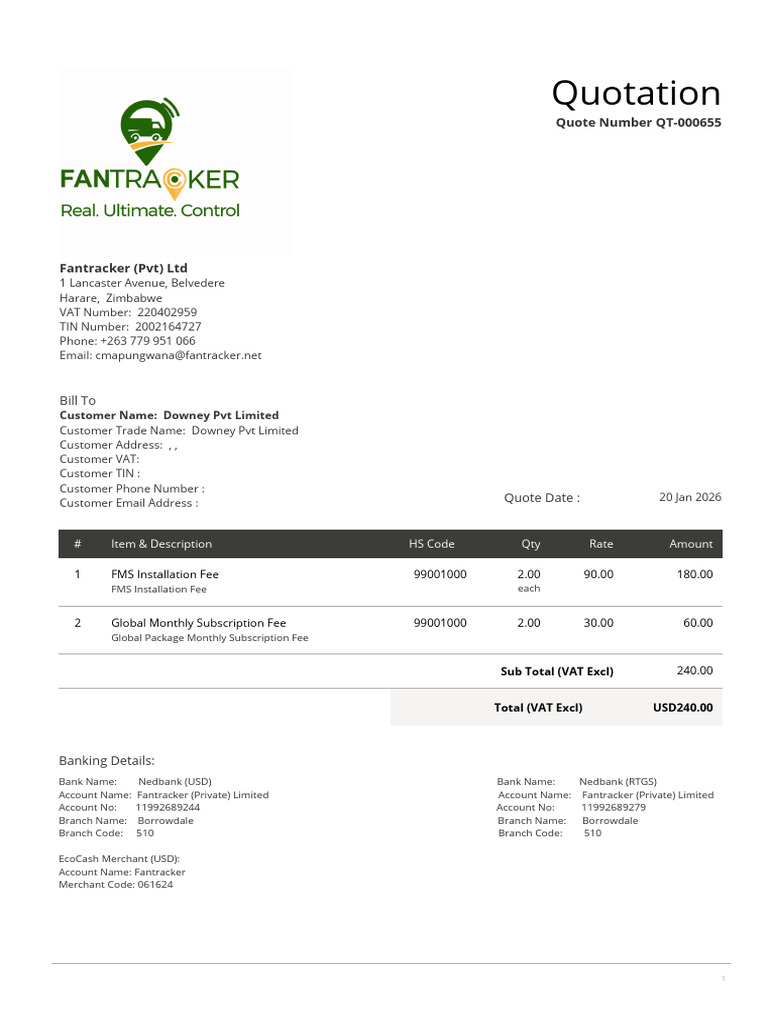 Customer Email Address : Quote Date : 20 Jan 2026
