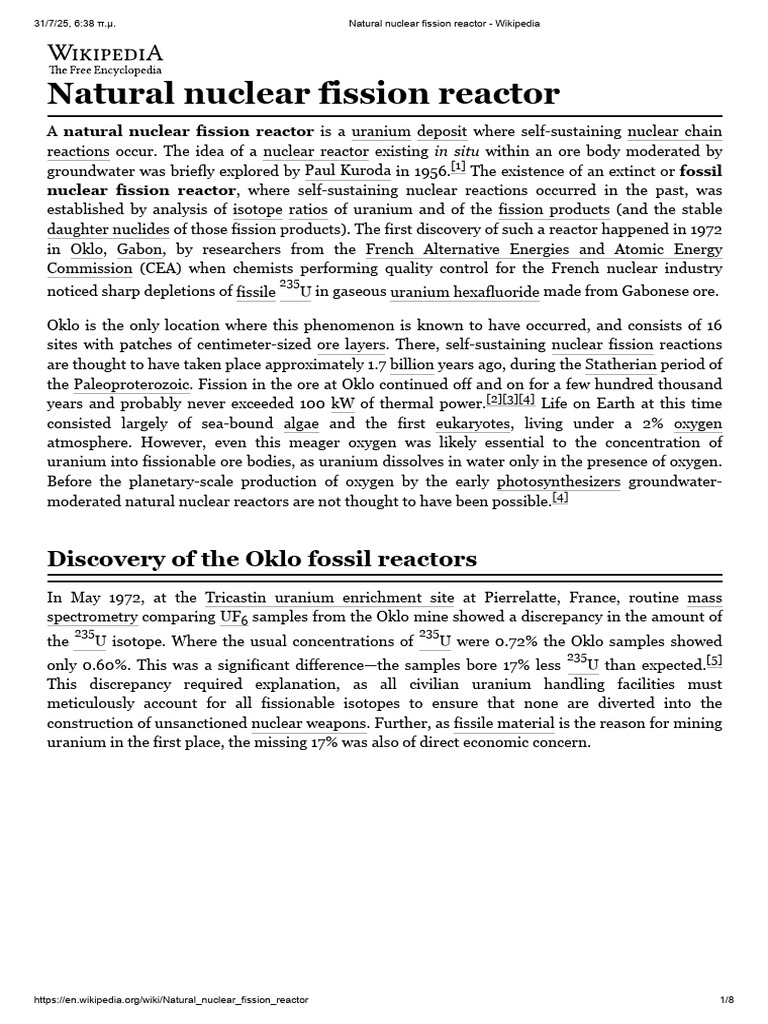 31/7/25, 6:38 π.μ. Natural nuclear fission reactor - Wikipedia