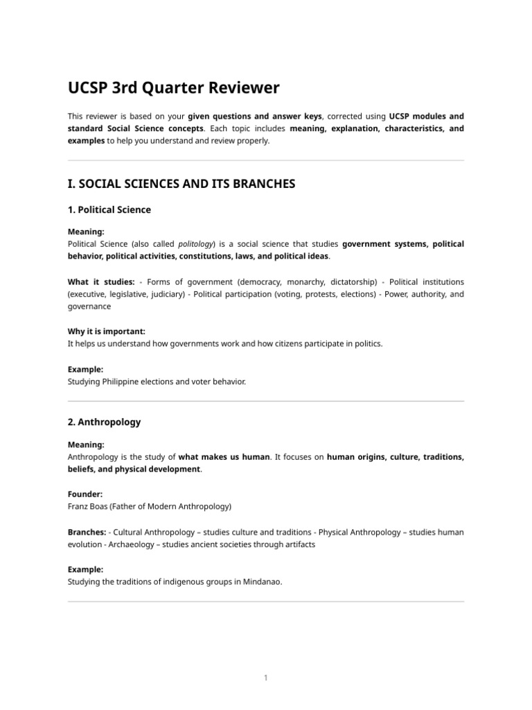 This reviewer follows UCSP concepts, correct definitions, and your answer key, with explanations to help