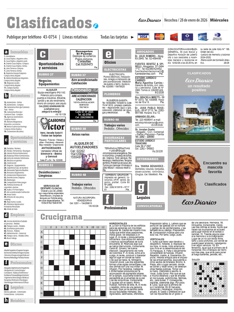 Clasificados Necochea / 28 de enero de 2026 Miércoles