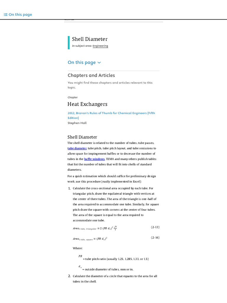 shell diameter. A somewhat more rigorous sizing procedure is based