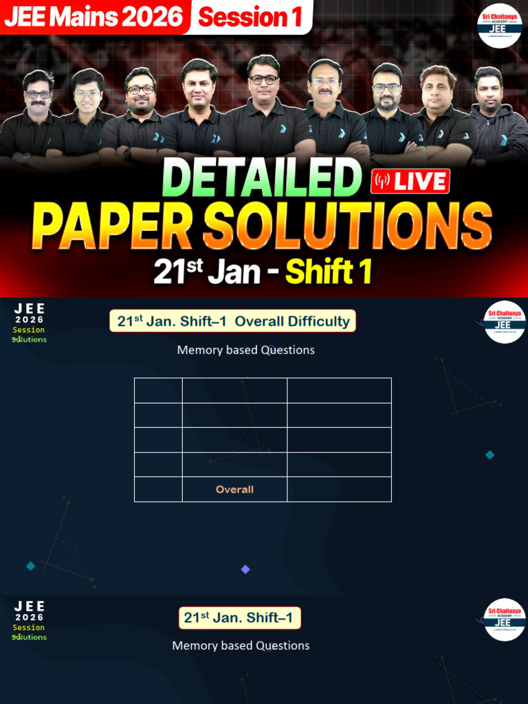 21st Jan. Shift–1 Memory Based Questions