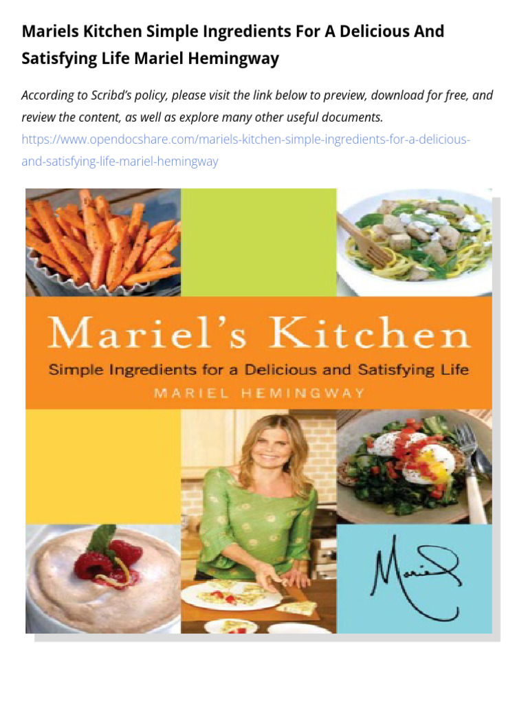 Mariels Kitchen Simple Ingredients For A Delicious and Satisfying Life Mariel Hemingway