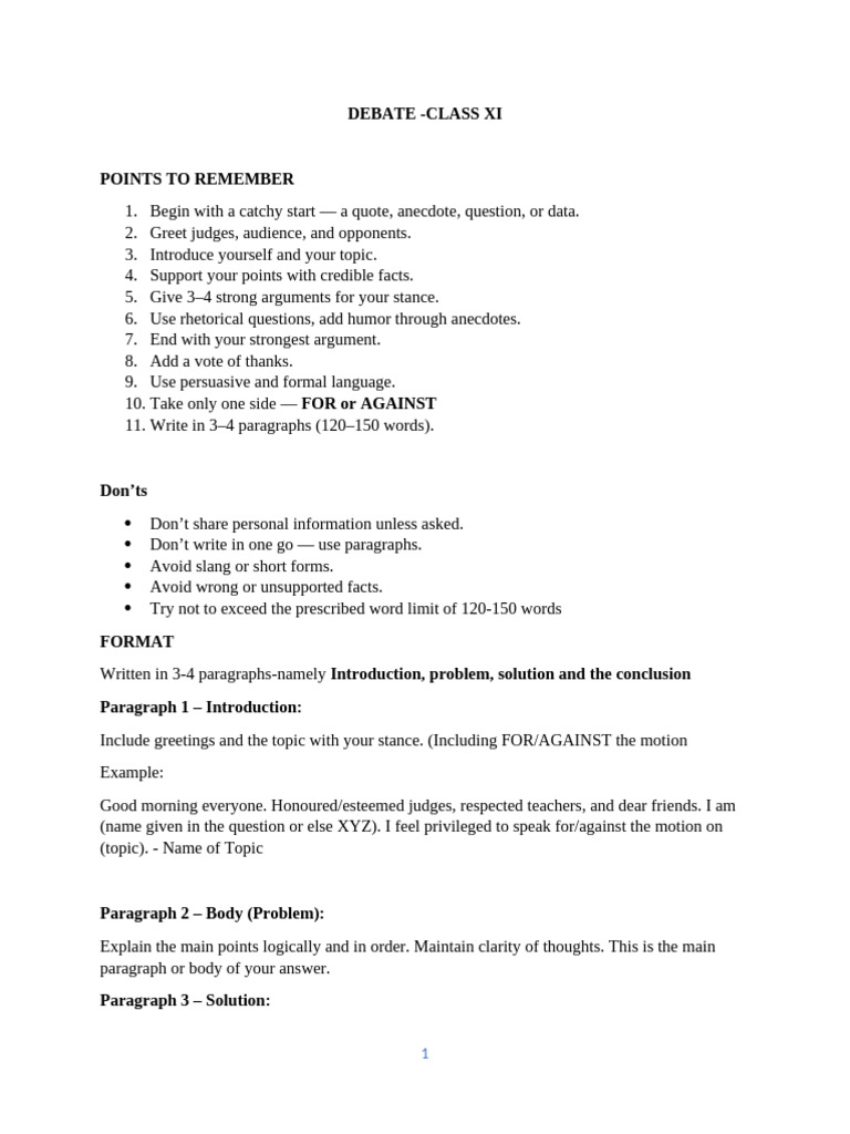 DEBATE -CLASS XI