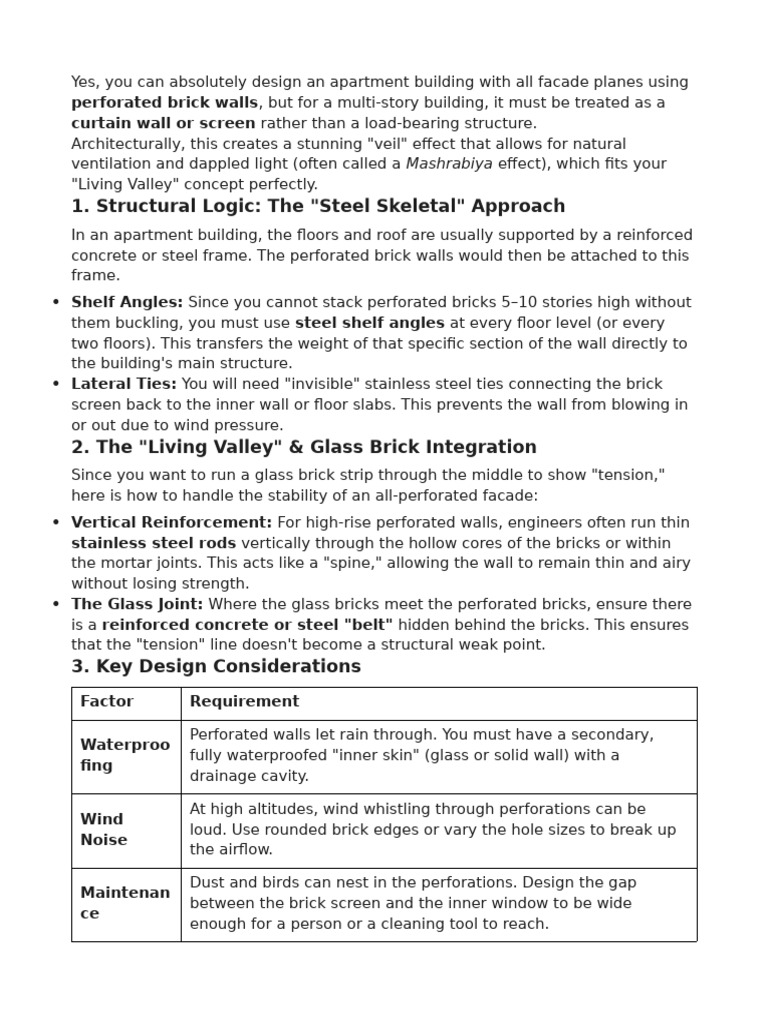 * **Concealed Armature:** Behind the glass and perforated brick "valley," use a **galvanized steel