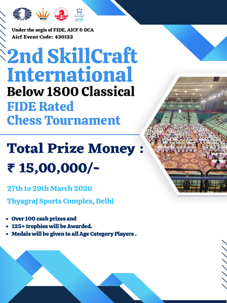 Tie Break: Tie Break according to latest AICF guideline. In case of a