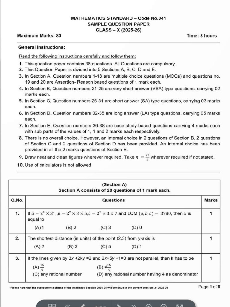 SAMPLE QUESTION PAPER