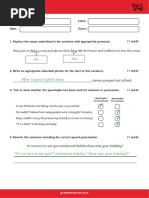 3. He is sorry about his mistakes. He is sorry . 1. about them 2. about it 3. them about 4. "Are they speaking to the men?" 1. them to 2. to them