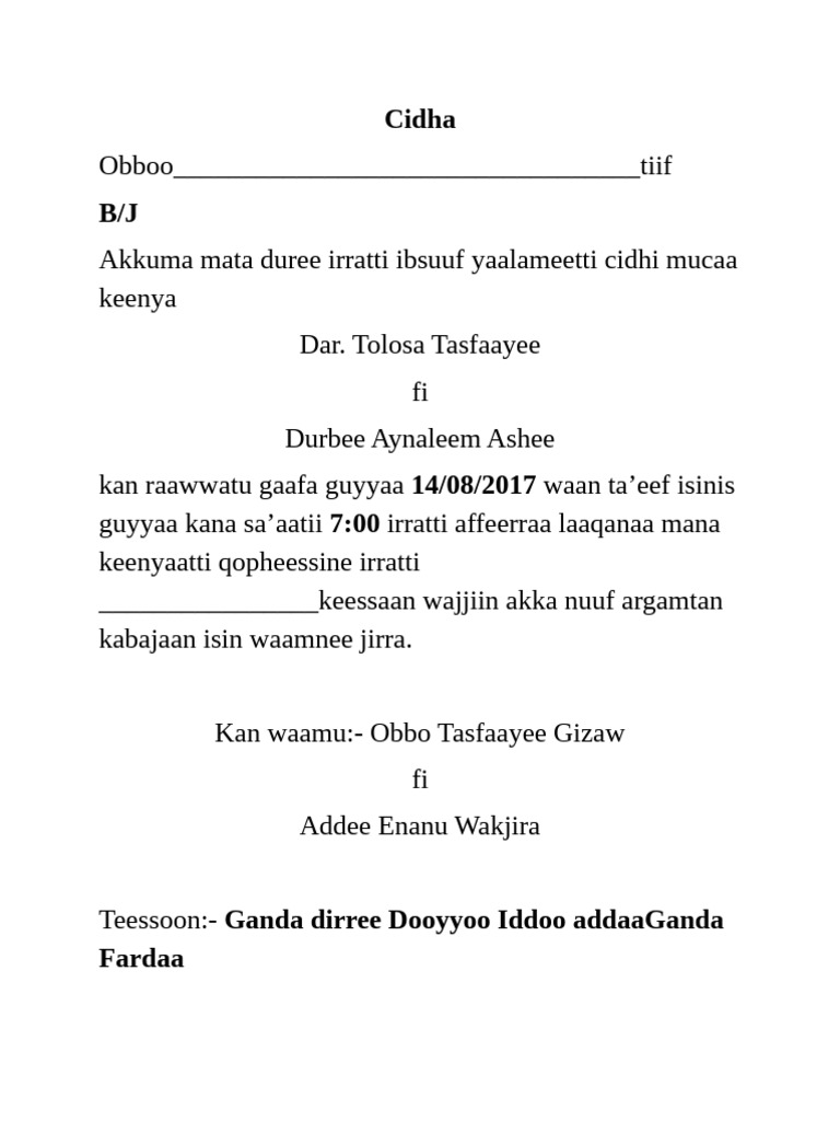 kan raawwatu gaafa guyyaa 14/08/2017 waan ta’eef isinis