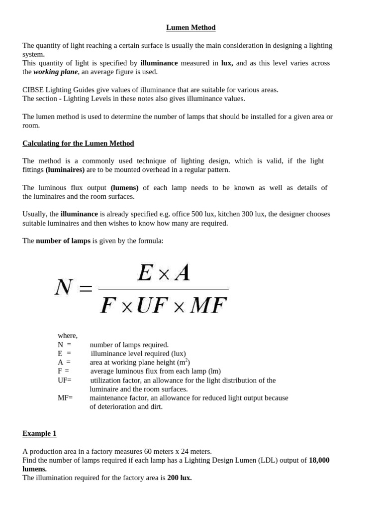 Calculating for the Lumen Method