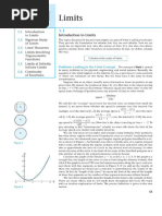 First, notice that were really interested in small values of . So lets assume 1. Then, we get: |f (x) f (p)| < (|a| + |2ap + b|) And now, if we have /(|a| + |2ap + b|), we are in good shape. So, a value of that works is min{1, /(|a| + |2ap + b|)}. What weve done above is obtained a value of . You should now be able to retrace the steps to conrm that this value of works. By the way, this generalizes Example 6 (Section 2.2, Page 68) of the book. In that example, a = 1, b = c = 0, and p = 3. So if there are too many symbols in this example and you want a simpler example with fewer symbols, you should look at that example in the book and then, armed with that, come back to master this one. Please go through both these very thoroughly; this is very important to understand. 3.2. Function with left and right denition. One kind of situation, that we have already seen, is a situation where a function given to us has one denition on the left side of a point and another denition on the right side of the point. Your intuition would tell you that if the left hand limit and the right hand limit exist separately, then the limit exists on the whole as well, and equals both these values. How can we make this intuition precise in terms of the game? The idea is to think of it as two games in parallel: the left hand limit game, where I have to throw back a at you that works for x approaching c from the left side, and the right hand limit game. The fact that the left hand limit and right-hand limit are both equal to L tells me that I have winning strategies for both games. I now need to combine them into a winning strategy for the two-sided limit game. How do I do this? Basically, I need to choose small enough that its good enough on both the left and the right. The idea is simple: pick as the minimum of the s that I picked on the left and on the right. This will work for both the left side and the right side. See, for instance, the example of the absolute value function (given on Page 67 of the book). At the point 0, the absolute value function has the denition x on the left and x on the right. So what we rst need to do is gure out the left strategy and the right strategy separately. For the function f (x) = x, what is the that works for a given ? Well, you can do the calculations again, but since we already did the general case of a linear function, we can just plug that in and get that = works. Similarly, on the right side, we again get that = works. So in this case, the same strategy works on both sides, so we can use = as the winning strategy for the two-sided limit. 3x, x<0 Okay, lets take a more interesting example. Suppose f (x) = { . It is an obvious guess that 5x, x 0 the limit at 0 equals 0. Since both sides are linear functions, we know how to get the strategies for the left side and the right side separately. The strategy for the left side is = /3 and the strategy for the right side is = /5. So, what is our overall strategy? The overall strategy should pick a small enough that it works for both sides. In this case, the smaller of the numbers /3 and /5 is /5 (remember, > 0). So, we get a winning strategy by choosing = /5. REMINDER: On your homework or in the midterm, you cannot assume the formulas we have derived for linear and quadratic functions. However, knowing these formulas will enable you to skip the rough work needed to nd the and move directly to the fair work of showing that that works. Lets now do the general case, with a full proof: