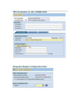 1. 2. 3. 4. Go to Transaction SXMB_ADM Choose Edit --> Change Global Configuration Data. Select Role of Business System: Application system Corresponding Integration server: dest://<HTTPDESTINATION>. <HTTPDESTINATION> XI_XIR_CONNECTION created in step Dest://XI_XIR_CONNECTION. Under Specific Configuration Data you can specify additional configuration data Here 1.