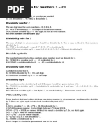 by 3, but it is possible to figure out the division 'rule' for any number. Here are the rules for 2 through 11... 2 The last digit is divisible by 2. 3 The sum of all the digits in the number is divisible by 3. 4 The last 2 digits are divisible by 4. 5 The last digit is 5 or 0. 6 The number is both divisible by 2 and divisible by 3. 7 Cut the number into 2 parts: the last digit and everything else before that. You now have 2 numbers. Take the number that was the last digit and multiply it by 2. Now subtract that from the other number. If this new number is also divisible by 7, then the original number was divisible by 7. Is 854 divisible by 7? Number A: 85 Number B: 4 Number A - 2 * Number B = 85 - 2 * 4 = 77 77 is most certainly divisible by 7, therefore 854 is also divisible by 7 8 The last 3 digits are divisible by 8 9 The sum of all the digits in the number is divisible by 9. 10