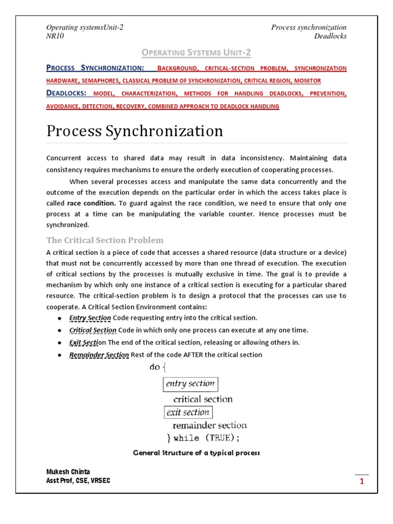 OS Process Synchronization, Deadlocks