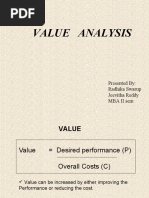 Value is the relationship between the defined function the customer requires and the costs incurred to provide that function. Cost Value Use Value Esteem Value Exchange Value