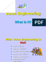 Value Engineering is used to determine the best design alternatives for Projects, Processes, Products, or Services Value Engineering is used to reduce cost on existing Projects, Processes, Products, or Services. Value Engineering is used to improve quality, increase reliability and availability, and customer satisfaction . Value Engineering is also used to improve organizational performance. Value Engineering is a powerful tool used to identify problems and develop recommended solutions.