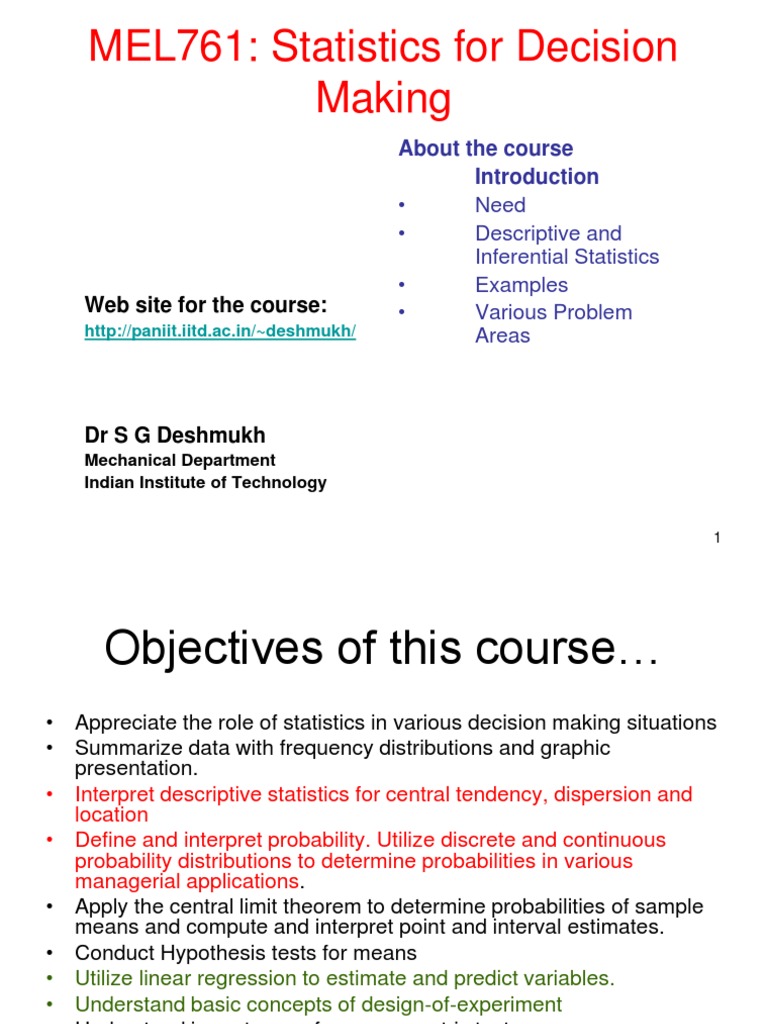 MEL761: Statistics for Decision Making