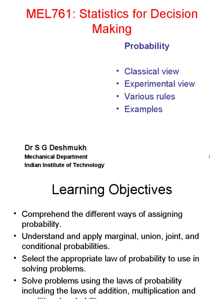 MEL761: Statistics for Decision Making