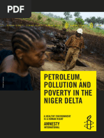 Natural Gas Flaring In Ogoniland, 95% of extracted natural gas is flared(compared with 0.6% in the United States) Nigerian oil fields are responsible for more global warming effects than the combined oil fields of the rest of the world Oil Spills Although Shell drills oil in 28 countries,40% of its oil spills worldwide have occurred in the Niger Delta. Pipelines and construction The extraction of oil has lead to construction of pipelines and facilities on precious farmland and through villages. Health impacts The Nigerian Environmental Study Action Team observed increased "discomfort and misery" due to fumes, heat and combustion gases, as well as increased illnesses, has observed higher rates of certain diseases like bronchial asthma, other respiratory diseases, gastroenteritis and cancer among the people in the area as a result of the oil industry.