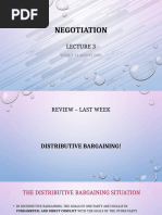 Distributive 1. One issue (or one at a time) 2. Win-Lose 3. Maximize share of fixed pie 4. One-time relationship 5. Keep interests hidden 6. One expressed position for each issue 7. Keep information hidden