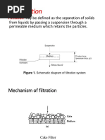 When a clear filtrate is required immediately after the filtration cycle commences otherwise recirculation must be employed until a clear filtrate is obtained. Filtration Once the precoating stage is completed the process slurry is pumped into the filter, the forming cake is retained on the plates and the filtrate flows to further processing. When the solids are fine and slow to filter a body-aid is added to the feed slurry in order to enhance cake permeability. However, it should be kept in mind that the addition of body-aid increases the solids concentration in the feed so it occupies additional volume between the plates and increases the amount of cake for disposal.