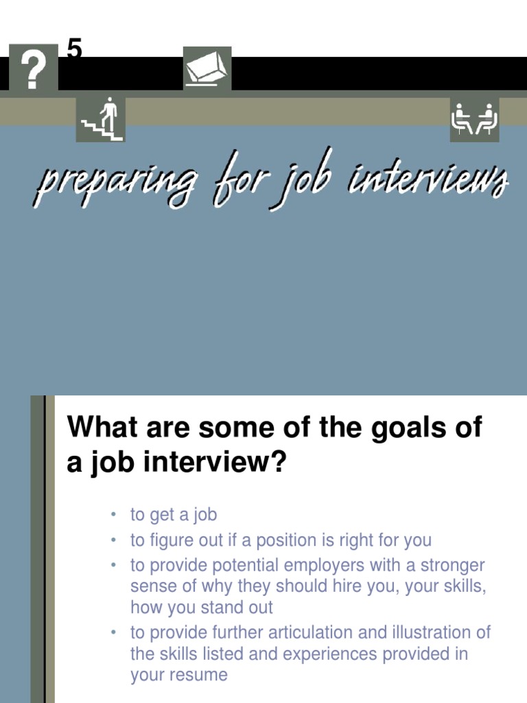 goals are to: answer the questions you should be asking yourself (e.g., is this really a job I want? what will I gain by getting this job? what do I bring that this organization needs? become knowledgeable so that you can speak specifically as to how you fit in the job, team, and context have a strong sense of what you will be expected to perform, and how that performance will be measured and evaluated address questions like: what might I be asked to answer? how will they expect me to answer? how might I be expected to demonstrate what I know and what I can do?