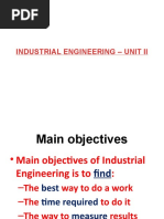 Improvement of processes and procedures. Improvement in the design of plant and equipment. Improvement of layout. Improvement in the use of men, materials and machines. Economy in human effort and reduction of unnecessary fatigue. Development of better working environment.