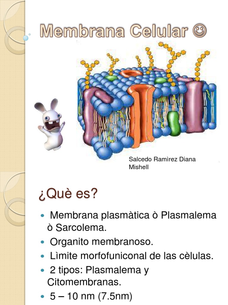 Membrana plasmàtica ò Plasmalema ò Sarcolema. Organito membranoso. Lìmite morfofuniconal de las cèlulas. 2 tipos: Plasmalema y Citomembranas. 5 – 10 nm (7.5nm)