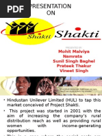 The Shakti dealer places initial orders worth Rs. 15,000/(principal customer of HUL) Finance : Self+SHG+micro credit Training by the Rural sales promoter. The Shakti dealer organizes, a Shakti Day in the village (display of products & free gifts ) Core Brands: Lifebuoy, Wheel, Pepsodent, Annapurna salt, Clinic Plus, Lux, Ponds, Nihar and 3 Roses tea.