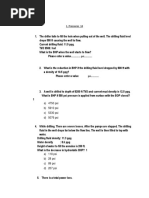 a. 5000 ft of brine having density of 10 lb/gal b. 40 API oil to 10000 ft c. 35 API OBM to 8000 ft d. 10000 ft of 0.38 psi/ft oil e. 12 lb/gal brine at 8000 ft MD/6000 ft TVD Solution : a. 0.052 x10 x5000 = 5200 psi b. Change API gravity to sp. gr. # 141.5/(131.5+40) = 0.825 sp. gr. 0.825 x 8.33 = 6.87 lb/gal, 0.052 x 6.87 x 10000 = 3572 psi c. Change API gravity to sp. gr. # 141.5/(131.5+35) = 0.849 sp. gr. 0.849 x 8.33 = 7.07 lb/gal, 0.052 x 7.07 x 10000 = 2941 psi d. 0.38 x 10000 = 3800 psi e. 0.052 x 12 x 6000 = 3744 psi