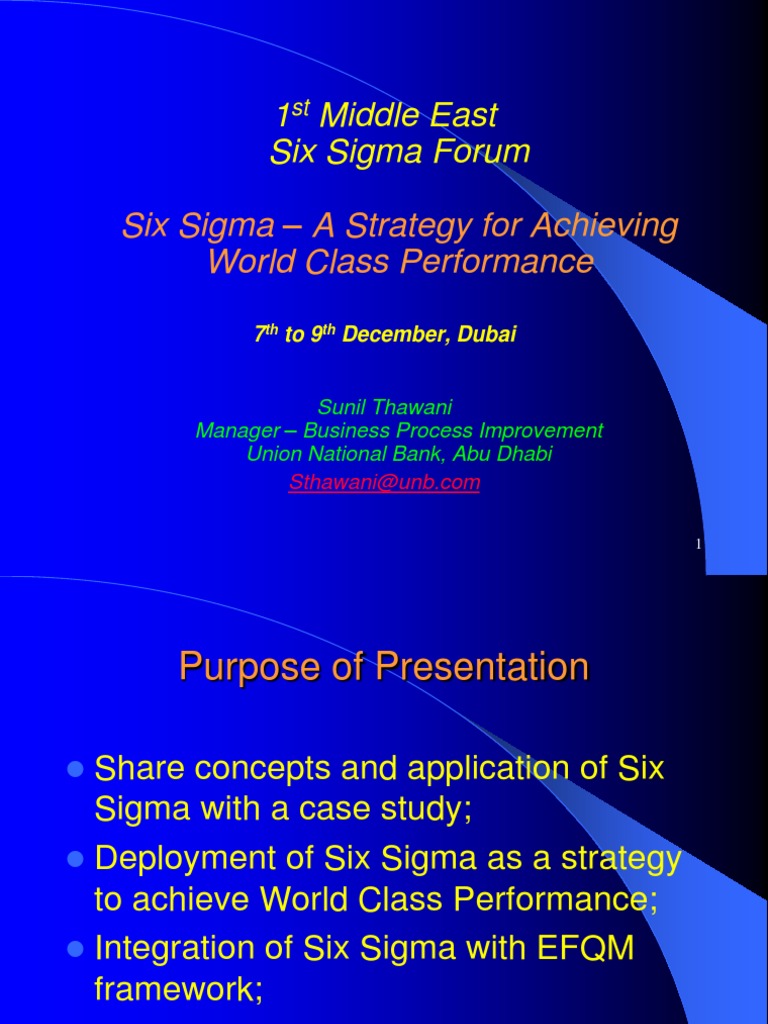 1st Middle East Six Sigma Forum Six Sigma A Strategy for Achieving World Class Performance