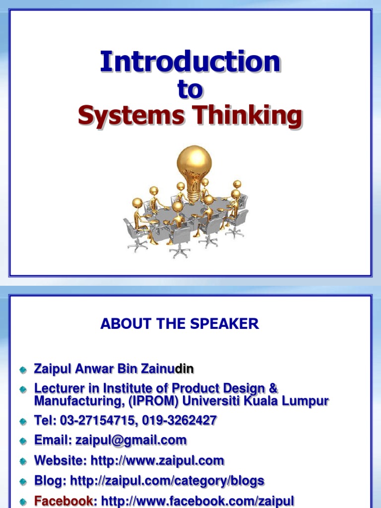 To more about Systems Thinking, read this book! THE FIFTH DISCIPLINES
