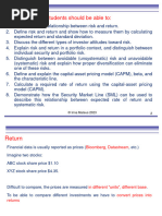 - A diversified portfolio is THE MARKET and has a MARKET RISK