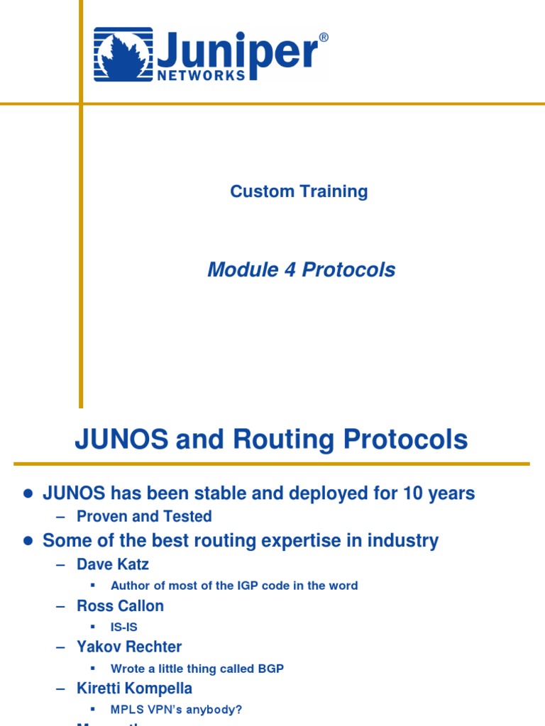 JUNOS has been stable and deployed for 10 years Proven and Tested