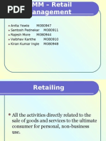 retail management is the sale by seller in small quantities to customer not for resale. The process of bringing the ultimate user to the main producer, through a series of stages, where retailing is the last one. It is not limited to quantities, but limited to the exact requirement of the ultimate user. Therefore, bringing about operational efficiency at this last stage, and creating an environment so compelling that he looks nowhere else, is "Retail Management". RM- is an art, and necessitates employing several tools of logistics management for a complete end user satisfaction. RM - is getting to know the final user on behalf of the producer. RM - is a process of facilitation.