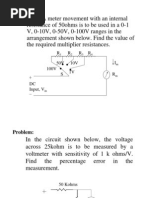 Example 1. Calculate the sensitivity of a 100-mA meter movement which is to be used as a DC Voltmeter. Example 2. Calculate the value of the multiplier Rs on the 50-V range of a DC Voltmeter that used 200-mA meter movements with an internal resistance of 1.2k.