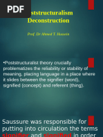 father of deconstructionism, a system of analysis which challenges the basis of traditional western thought. The deconstructive approach argues that all writing has multiple layers of meaning which even its author might not understand and which leave it open to an endless process of reinterpretation
