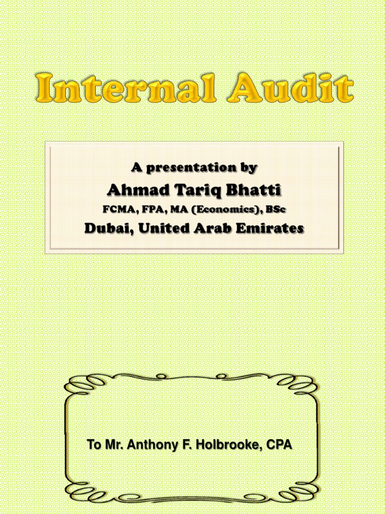 To Mr. Anthony F. Holbrooke, CPA