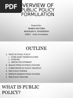 The policy is made in the publics name. Policy is generally made or initiated by government. Policy is interpreted and implemented by public and private actors. Policy is what the government intends to do. Policy is what the government chooses not to do.