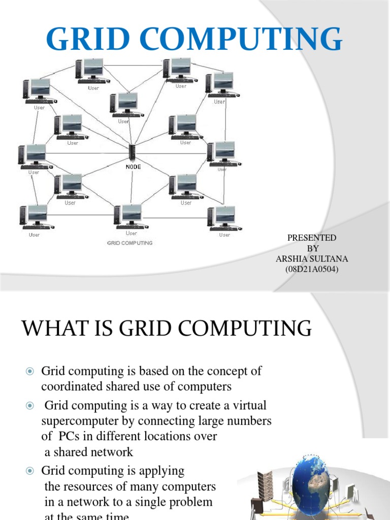 Grid computing is based on the concept of coordinated shared use of computers Grid computing is a way to create a virtual supercomputer by connecting large numbers of PCs in different locations over a shared network Grid computing is applying the resources of many computers in a network to a single problem at the same time