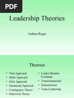 Situational/contingency theories Fiedler's Contingency Model Path-Goal Theory Hersey-Blanchard Situational Theory (next class)